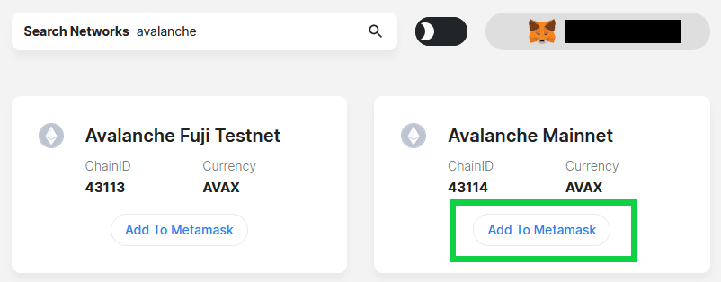 Step 1: Add the Avalanche network to MetaMask using Chainlist.
